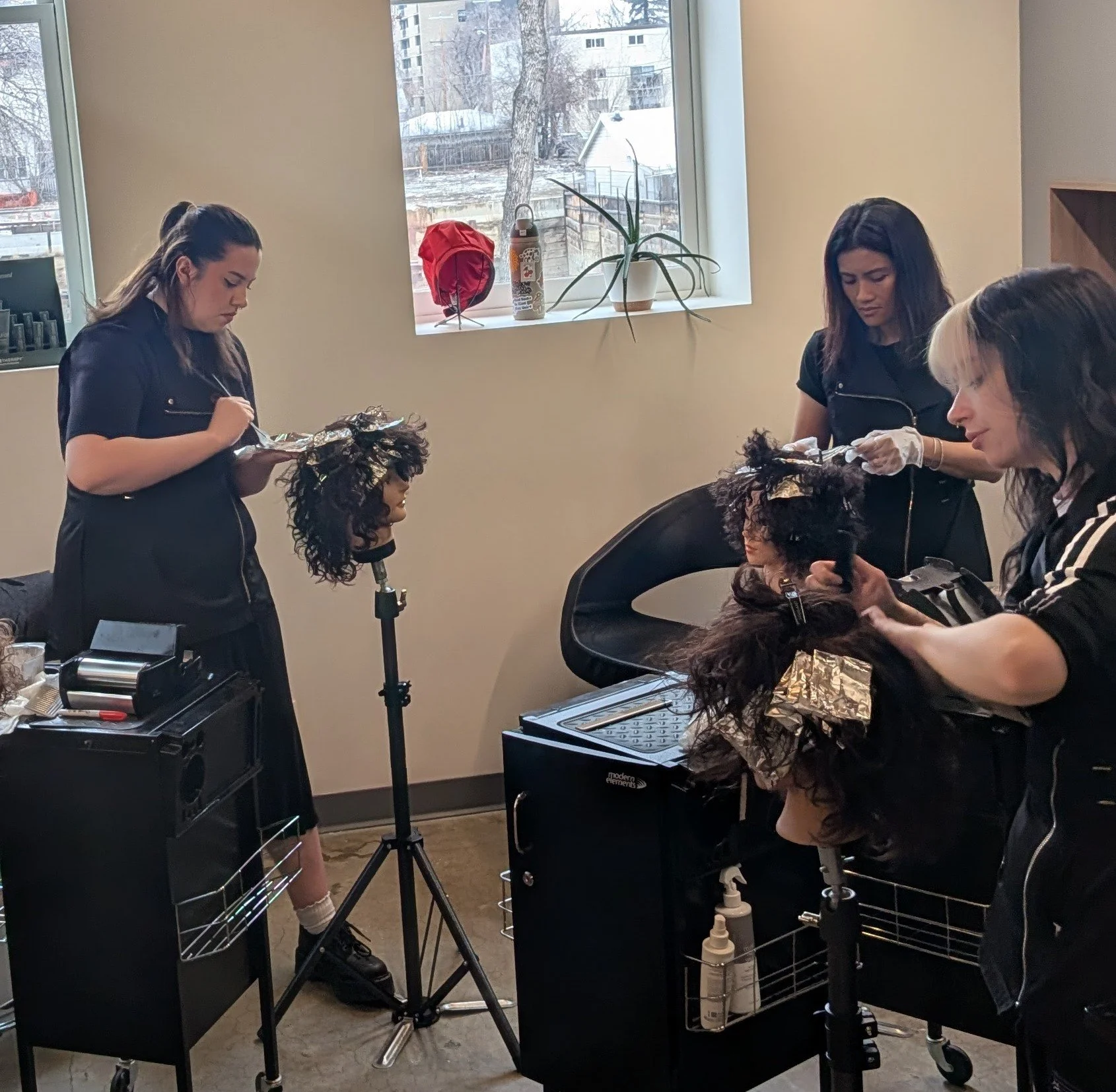 That commitment includes returning to the fundamentals. Our team regularly works on mannequins to refine foundational skills. This includes but is not limited to sectioning, foiling, blow drying, combing, and core haircutting techniques. This is not because we do not know them. It is because mastery is built through repetition and refinement. We also work on building everyone's soft skills and emotional intelligence; to allow for a deeper connection with our clients.